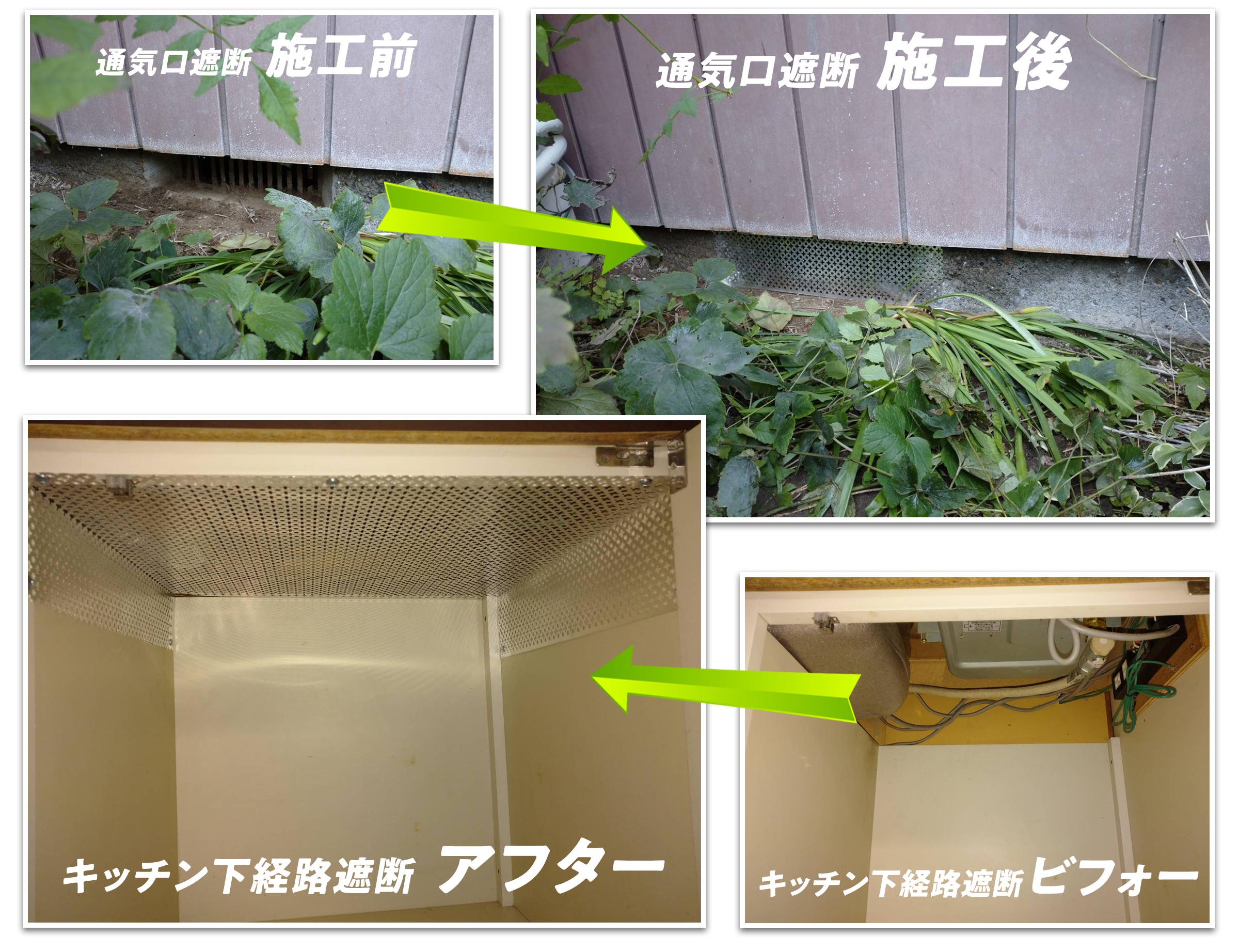また、一度出て行ったねずみが帰って来ることも防げますし、新規のねずみも入れなくなります。